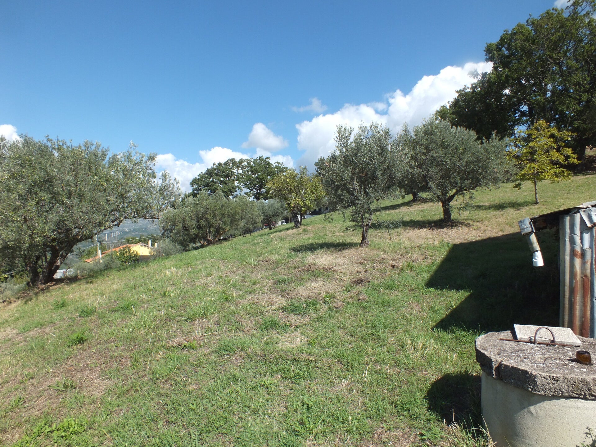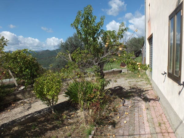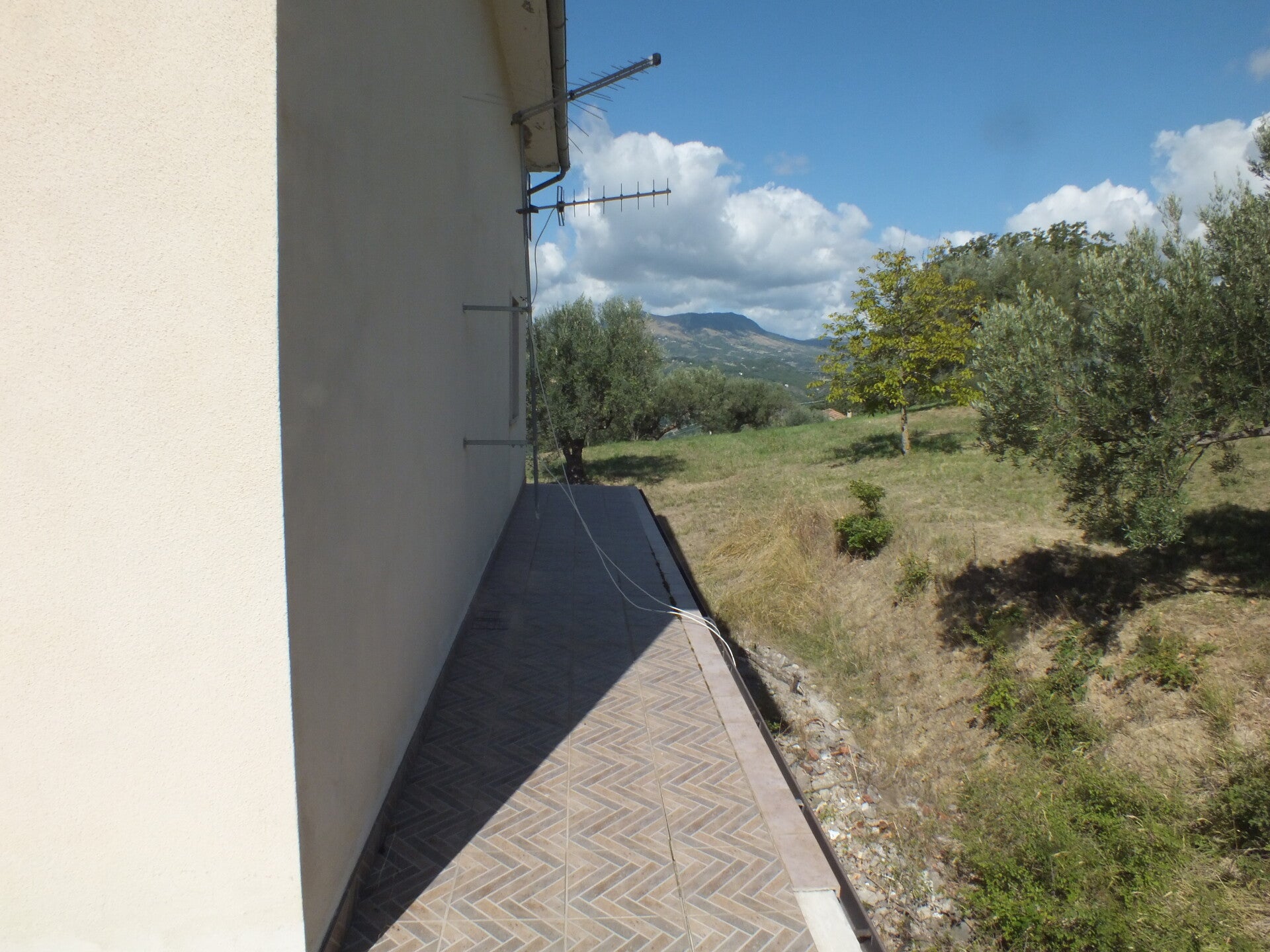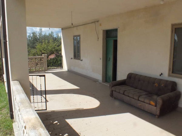 -Aussen: Grosses Grundstück bepflanzt mit Olivenbäume, Obstbäume und einen Gemüsegarten. Eigene Zufahrt zu der Garage und ebenfalls eine Traumhafte Terrasse welche durch den oberen Balkon komplett gedeckt ist. Wasser und Stromanschlüsse inklusive ein Waschbecken sind auch hier vorhanden.